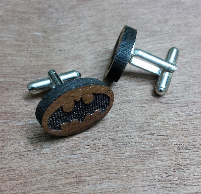 The natural wood surface provides a warm and elegant texture, while the durable metal cufflink mechanism ensures secure and comfortable wear with formal shirts and suits. The engraved bat symbol adds a bold yet subtle personality to formal attire, making them perfect for individuals who appreciate unique accessories.