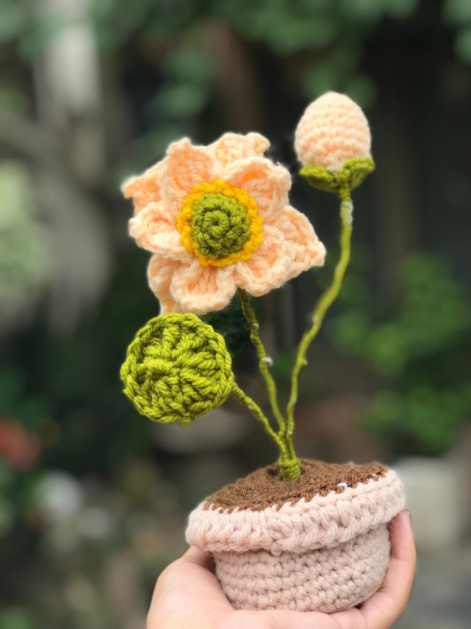 Add a soft, natural charm to your space with this Crocheted Peach Blossom Plant Decor! Handcrafted with delicate peach blossoms, green buds, and a cozy beige pot, this unique piece brings a touch of springtime indoors. Perfect as a handmade decor item or a thoughtful gift.