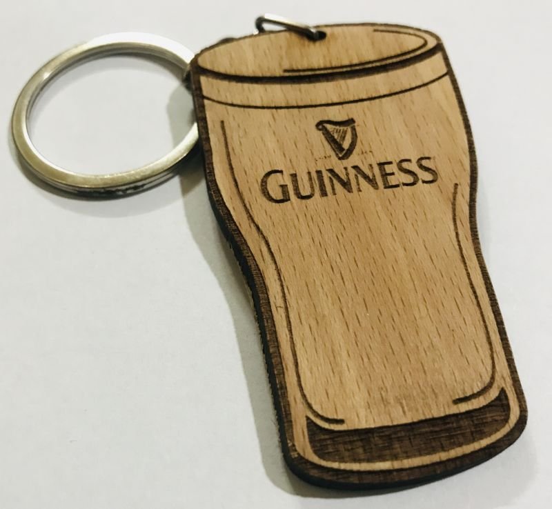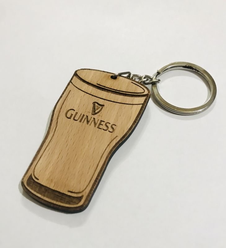 Customized Pint Shaped Wooden Logo Keychain – Irish Theme