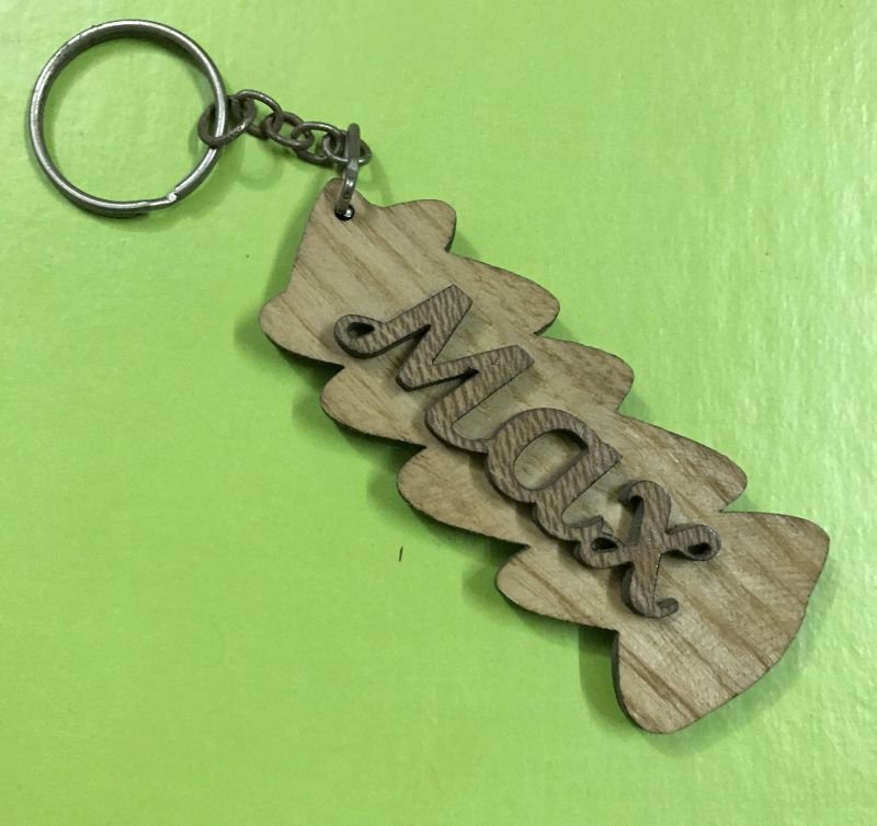 Make your personalization stand out with our Double Layered Laser Cut Customized Wooden Keyring, crafted from solid contrast woods for a bold, eye-catching design. This two-layer construction creates a striking depth effect, with customized letters precisely laser cut and mounted for a premium finish.