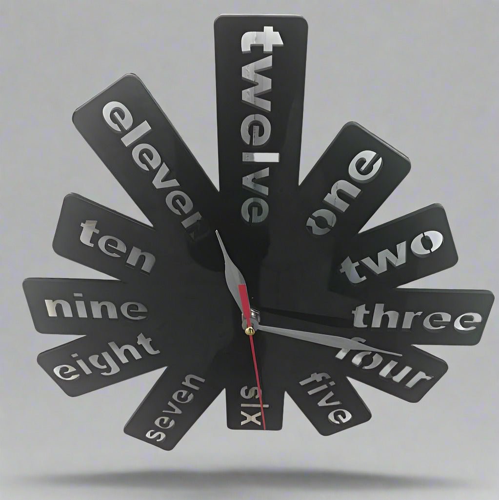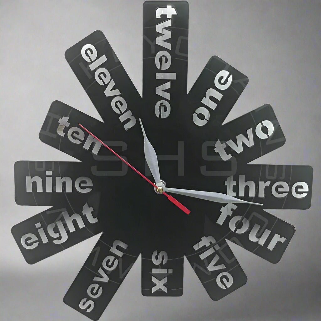 Bring together learning and style with this English word-style acrylic wall clock, designed with each hour written in words instead of numbers. Crafted using precision laser-cut acrylic, this unique design adds both visual interest and educational value to any space.