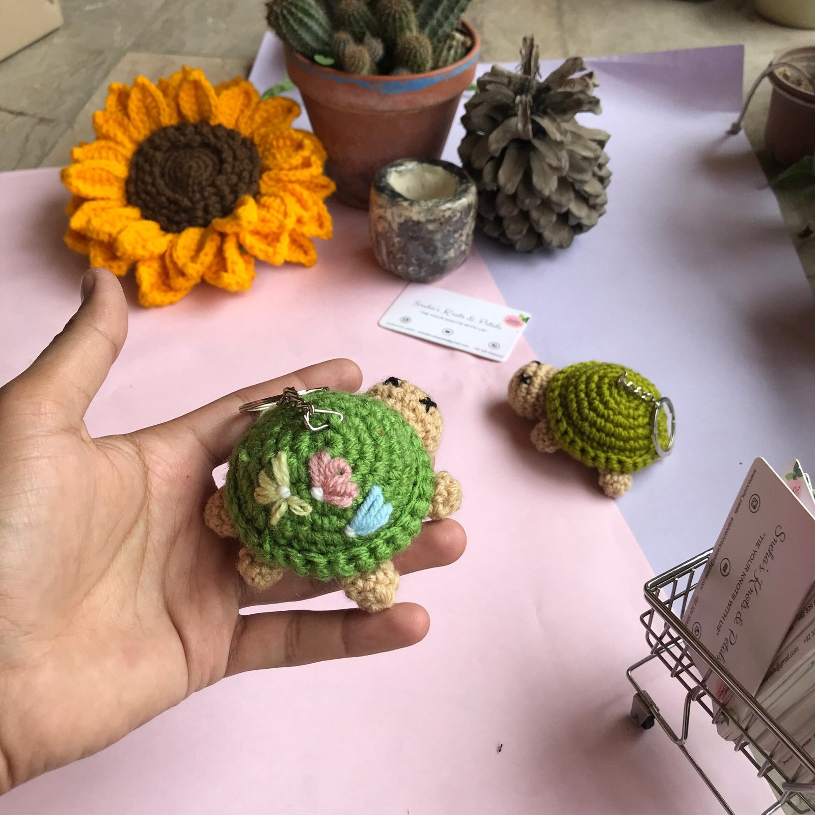 Add a touch of charm to your day with our Handcrafted Crochet Turtle Keychain! This adorable green turtle features a beautifully detailed floral shell design, bringing together creativity and craftsmanship in every stitch. Perfect for decorating your keys, bags, or backpacks, this handmade piece makes a thoughtful gift for animal lovers and crochet fans alike. Cute, durable, and full of personality — it’s a tiny treasure you’ll love to carry everywhere!