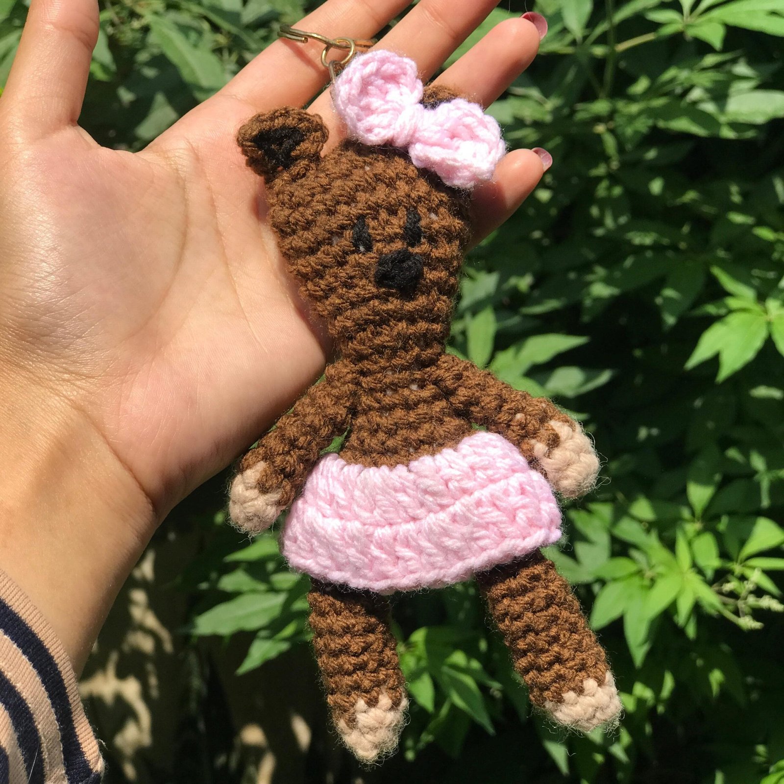 Handmade Crochet Mr. Bean Teddy Keychain crafted with soft, eco‑friendly yarn and charming details. Available in two delightful variations—a classic brown Mr. Bean teddy (male) and Irma Gobb’s teddy (female) with a pink bow and frock—this lightweight, cute accessory is perfect for fans, gifting, or adding character to your keys or bags.