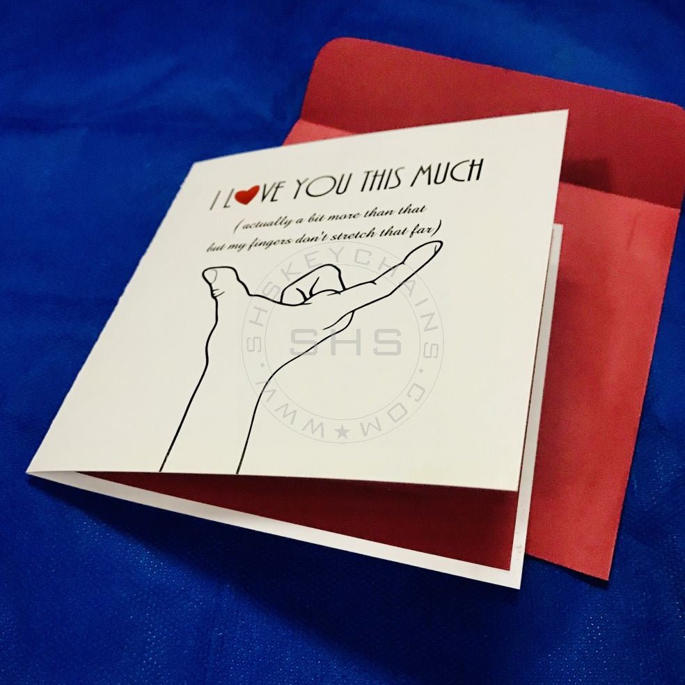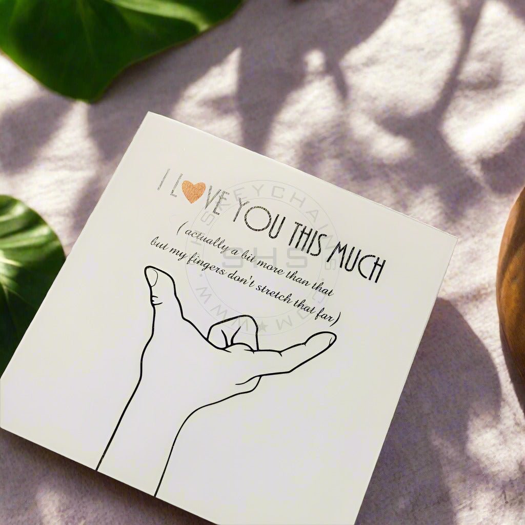 Express your love in a playful and heartfelt way with our “I Love You This Much” Greeting Card.