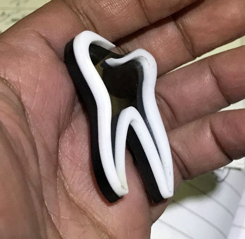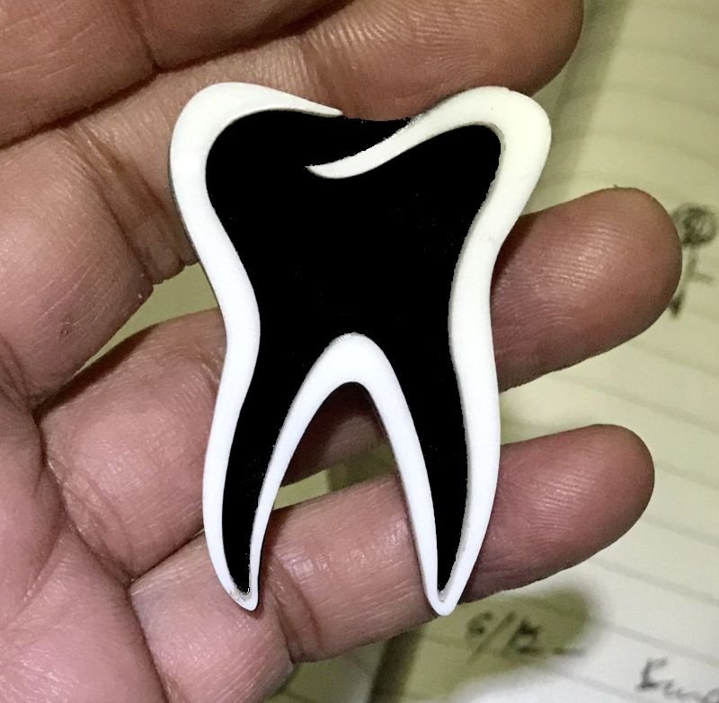 Make a bold statement with our Large Tooth Shaped Laser Cut Acrylic Badge, designed for maximum visibility and professional impact. Crafted using precision laser cutting technology, this layered black and white acrylic design creates a clean, modern dental silhouette that stands out instantly.