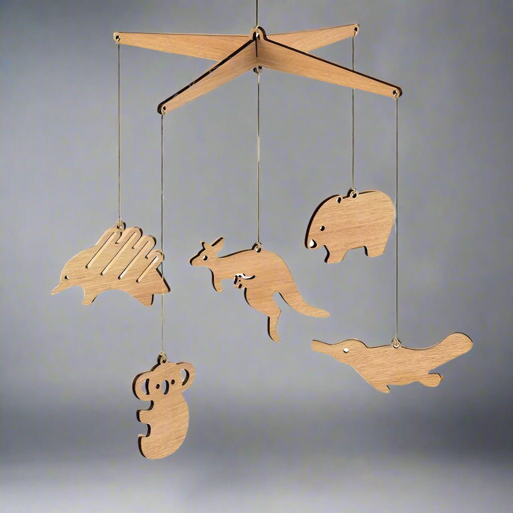 Precision laser cutting ensures clean edges and balanced silhouettes, while the natural wood finish gives a warm and organic look. Lightweight and easy to hang, this mobile-style décor is ideal for nurseries, playrooms, classrooms, or themed interiors.