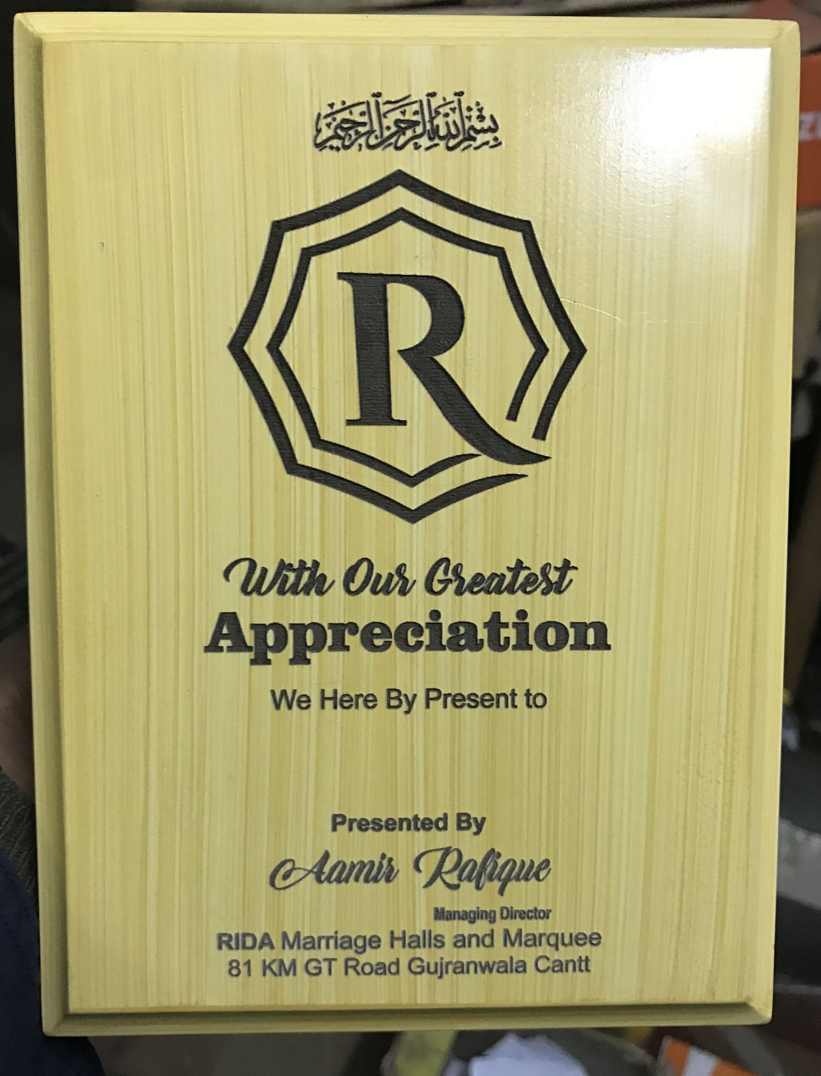 Crafted from high-quality MDF with a cedar-style finish, this plaque provides a smooth engraving surface that highlights logos, event titles, names, and recognition messages with excellent clarity. The natural wood texture combined with precision laser engraving gives the plaque a professional and elegant appearance.