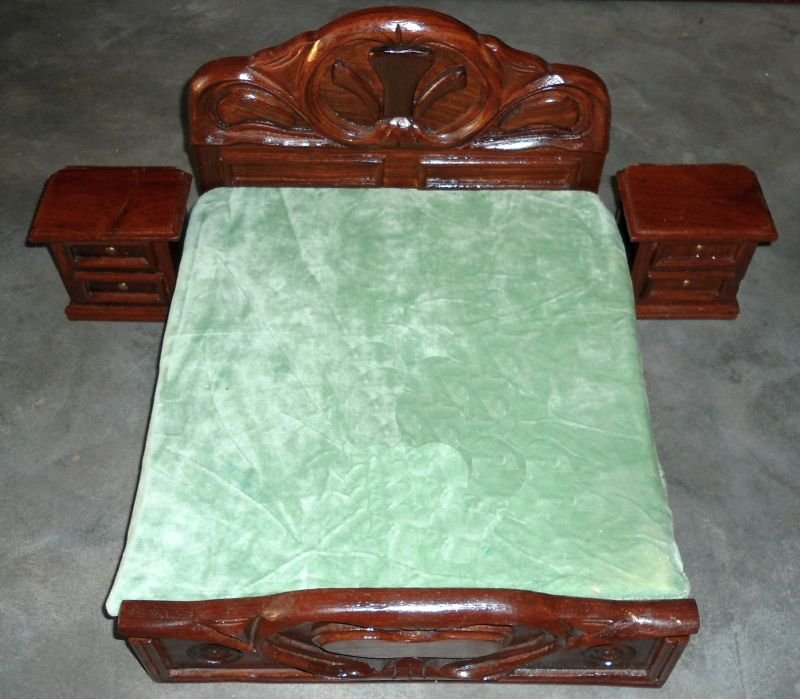 This exquisite miniature bedroom set is crafted from real solid wood and finished with premium polish — just like full-scale furniture.