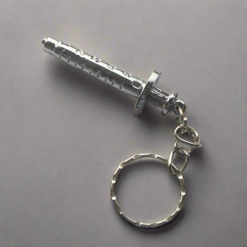 Medical Syringe Shaped Keychain (Silver Plated)