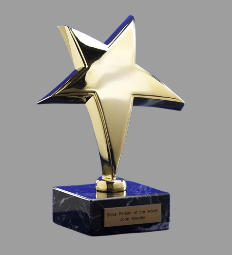 This Metal Star Excellence Trophy is a stylish recognition award designed to celebrate achievement, leadership, and outstanding performance. Featuring a polished gold or silver plated star mounted on a solid marble stone base, this trophy delivers a prestigious and professional appearance suitable for corporate ceremonies and recognition programs.