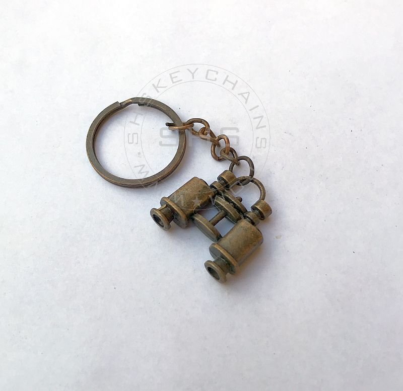 Antique bronze zinc alloy miniature binocular keychain. A compact explorer-themed charm perfect for travelers and adventure lovers.