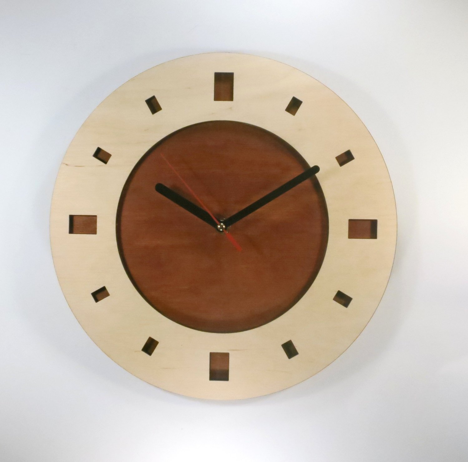 Enhance your space with this minimalist double-layer wooden wall clock, designed for a clean and contemporary look. Crafted from high-quality plywood, the dual-tone layered design creates a subtle contrast that adds depth and sophistication.