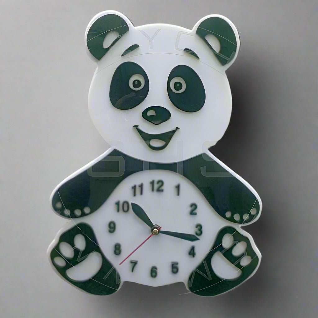Cute panda acrylic wall clock for kids—fun, colorful, and perfect for learning time.