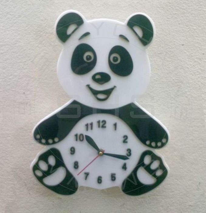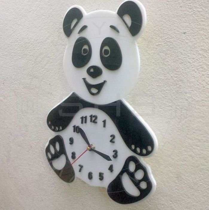 Panda Kids Wall Clock – Black & White Acrylic Cartoon Design