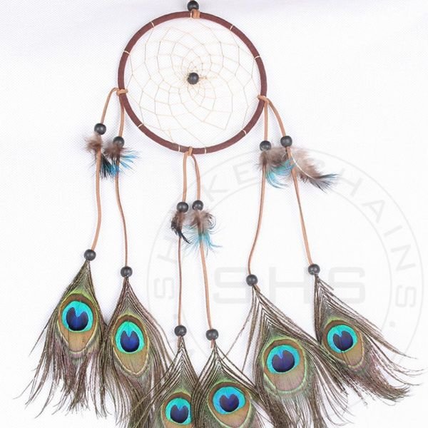 A beautifully handcrafted dream catcher featuring a 5-inch ring adorned with natural peacock feathers and delicate web weaving. Designed to add a spiritual and decorative touch to any space, this piece is perfect for bedrooms, offices, and gifting. Its vibrant feathers and elegant design make it a unique addition to both personal décor and customized gift collections.