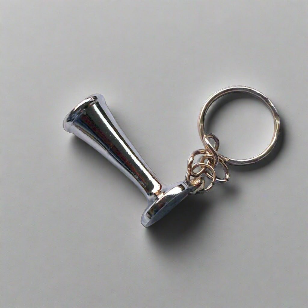 Silver-plated Pinard fetoscope miniature keychain—perfect for gynecology professionals and bulk medical promotions.