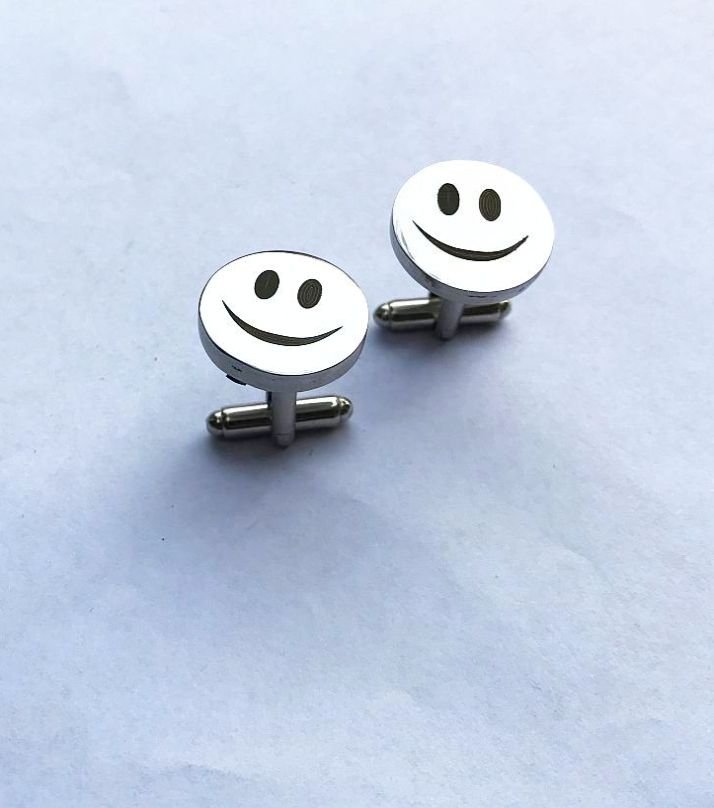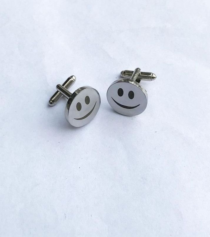 Add a playful and stylish touch to formal attire with these Smiley Face round cufflinks. Designed with a polished stainless steel face featuring a classic smiley engraving, these cufflinks combine elegance with a light-hearted personality.