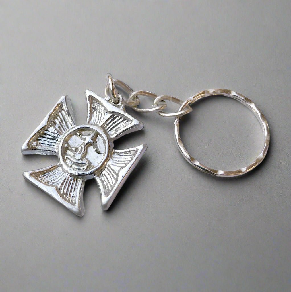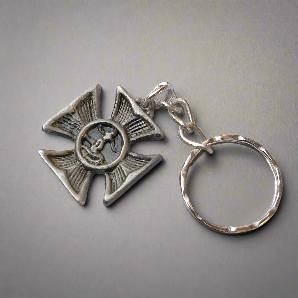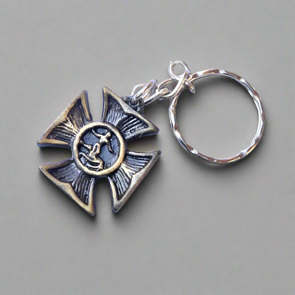 Vintage Surfer’s Cross metal keychain available in multiple finishes. A meaningful coastal-inspired accessory that can also be worn as a pendant.
