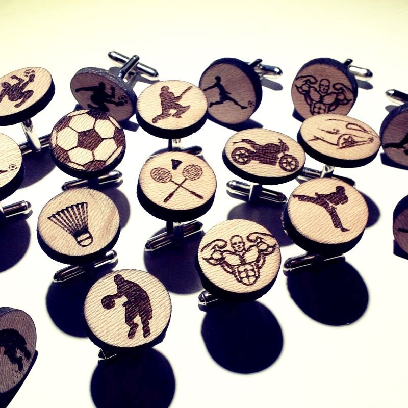 These Laser Engraved Wooden Sports Cufflinks are designed for sports enthusiasts who want to bring their passion into their formal style. Featuring round natural wooden tops with precision laser engraved sports icons, these cufflinks combine sporty character with elegant craftsmanship.